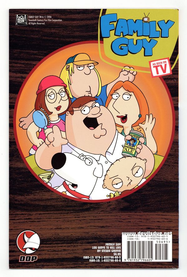 Published Apr 2006 by Devil's Due.$32.00Newsstand Edition. The Family Guy steps out of the TV screen and into a new bimonthly series from Devil's Due! Each of the three volumes in this series focuses on one of the star characters, and their views on life... however skewed they may be! Want advice from Peter or Stewie? Probably not, but they're going to give it to you anyway! IN between these hilarious one-on-one segments are stories rivaled only by the TV show itself. Written by Matt Fleckenstein, staff writer for the animated series! Cover price $6.95.