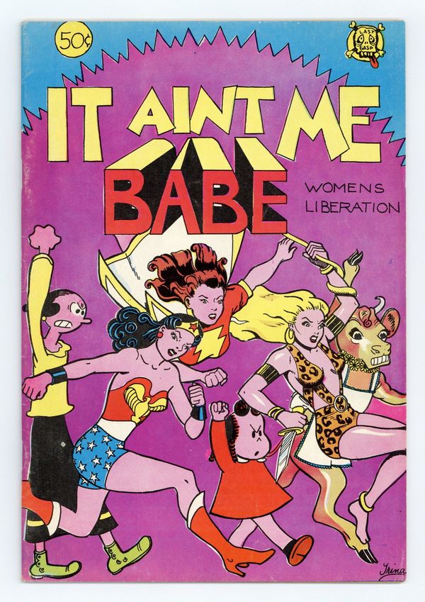 1st Printing (Light Purple/Light Blue Cover). 1st underground comic published entirely by women, addressing women's liberation issues. Women of comics cover (Olive Oyl, Wonder Woman, Sheena, Mary Marvel, Little Lulu) by Trina Robbins. Other artists who contributed to this issue are Willie Mendez, Michele Brand, Lisa Lyons, Nancy "Hurricane" Kalish, & Carole; slick cover; b&w; mature; 6 1/2-in. x 9 1/2-in. Trina Robbins, pages 1, 12-15, 26-33; Meredith Kurtzman (Harvey Kurtzman's daughter!), pages 2, 34; Barbara "Willie" Mendes,pages 3-8, 36; Michele Brand, pages 9-11, 24-25; Lisa Lyons, pages 16-17; "Hurricane" Nancy Kalish, pages 18-19; and Carole,pages 20-23. Cover price $0.50.