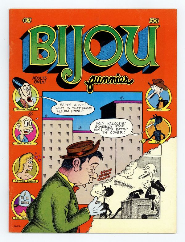 Tags: UndergroundPublished Oct 1969 by Bijou Publishing.$7.50*18+ Mature Readers Only* 1st/2nd printing (1st and 2nd printings are believed to be indistinguishable). Jay Lynch cover. Art by Lynch, Skip Williamson, Roger Brand, Kim Deitch, Jay Kinney, Rory Hayes, Dan Clyne, Robert Crumb, and Justin Green. 6 1/2" x 8 5/8", 36 pages. MATURE READERS. *18+ Mature Readers Only* Cover price $0.50.