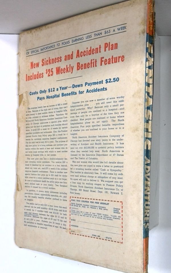 - Front cover detached 15%. Water damage: Slight. Staple rust: Slight.