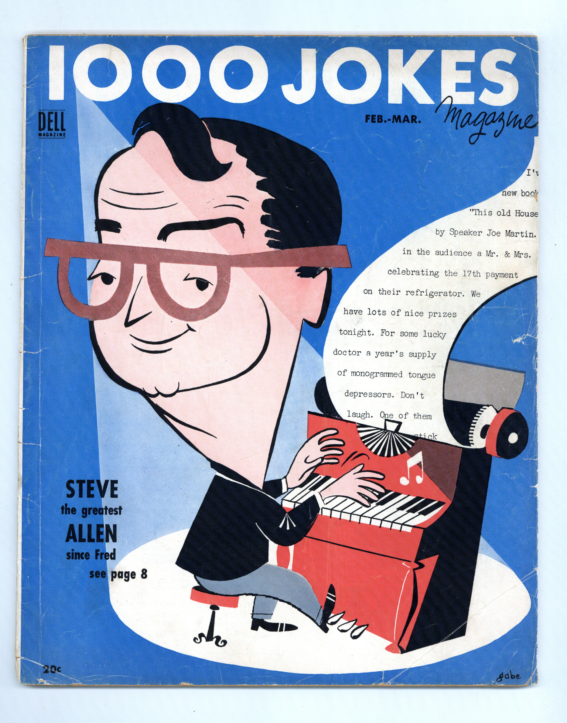 February-April, 1955. Humor magazine featuring humorous essays, short satires, cartoons and light verse. This Issue features Steve Allen. Saddle Stitched, 8 1/2- x 10 1/2-in, 52 Pages, B&W. Cover price $0.20.