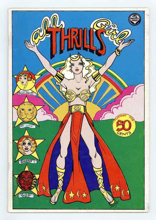 Tags: UndergroundPublished 1971 by Print Mint.$37.001st printing. Cover by Trina Robbins. Stories, and Art by Trina Robbins, Barbara "Willy" Mendes, and Julie Wood (Also known as Jewel, and Julie Goodvibes). Underground comic created entirely by female creators. 36 pages, B&W. MATURE READERS Cover price $0.50.