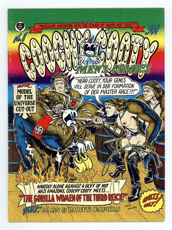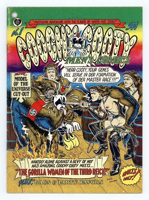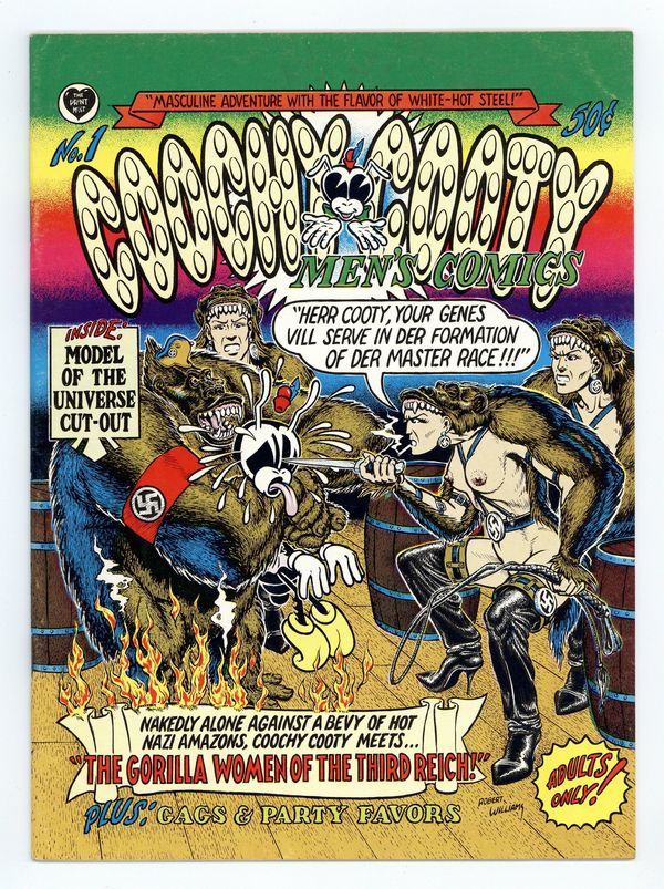 Tags: UndergroundPublished 1970 by Print Mint.$13.501st printing. Stories, art and cover by Robert Williams. Featuring some of Robert Williams most recognized work "The Gorilla Women of the Third Reich!". 28 pages, B&W. MATURE READERS. NOTE: 1st printings are identified by a $0.50 cover price. Cover price $0.50.