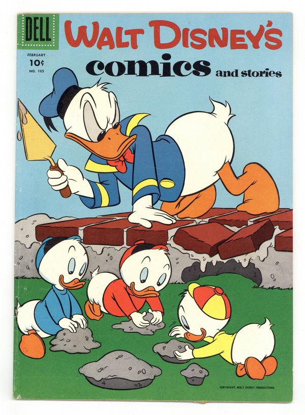 Tags: Disney Ducks & MicePublished Feb 1956 by Dell/Gold Key.$15.25Cover by Tony Strobl. Stories and art by Carl Barks, Jack Bradbury, Carl Fallberg, Paul Murry, Bob Karp, and Al Taliaferro. Sometimes listed as Vol. 16 #5. The long-running vehicle for Disney character comics featured art by Carl Barks, the legendary Good Duck Artist. Mickey and Goofy are working for a restored train that is slowly disappearing, car by car. In a story by Barks, Donald and his nephews try to keep their New Year resolutions secret from each other. The Big Bad Wolf calls in the Wicked Witch to make Li'l Bad Wolf turn mean. Donald Duck; Li'l Bad Wolf; Pluto; Danny's Day; Mickey Mouse: The Vanishing Railroad. 32 pages, Full Color. Cover price $0.10.