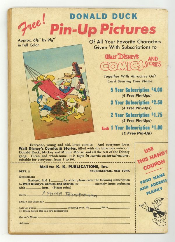 Tags: Disney Ducks & MicePublished Aug 1947 by Dell/Gold Key.$14.00- Cover oxidation. Residue.