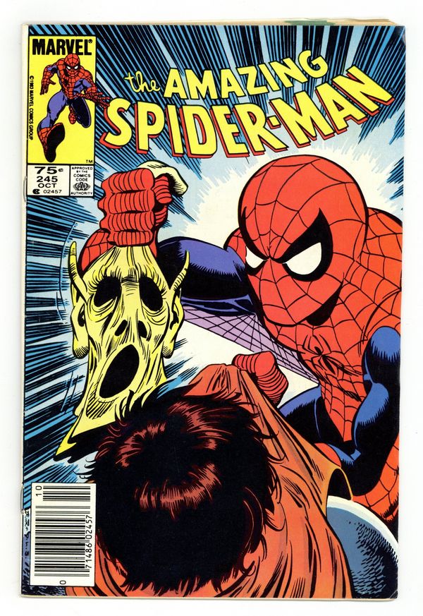 Tags: Canadian Price Variant, Spider-Man$16.00Canadian Edition with 75¢ Cover Price. "Sacrifice Play!" Part 2 of 2. Fourth appearance of the Hobgoblin. Script by Roger Stern. Art by John Romita Jr. (breakdowns) and Dave Simons (finishes). Cover by John Romita Jr. and Dave Simons. The wondrous wall-crawler thinks he knows who the Hobgoblin is! Lefty Donovan! Who? Apparently the evidence from the police points in Lefty's direction! So the web-slinger conducts a relentless search! And in the skies over Times Square, the Amazing Spider-Man and the (suddenly super-strong) Hobgoblin clash again! Will this battle solve the mystery of the goblin's identity? Or just add to the puzzle? Cameo appearances by Mary Jane Watson, Ned Leeds, and Betty Brant Leeds. (Note: The Hobgoblin appears next in Spectacular Spider-Man 85 -- a must read to keep up with the Hobgoblin's development.) Cover price $0.75.