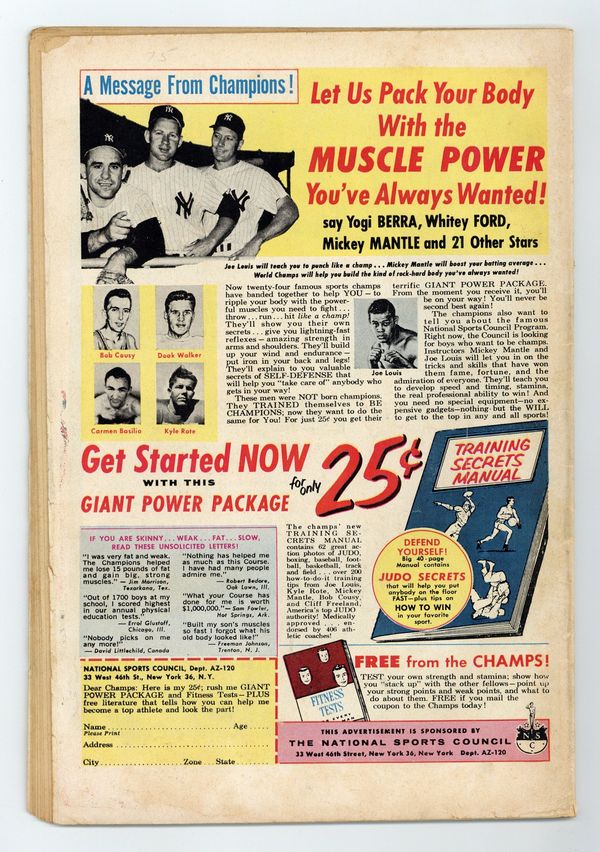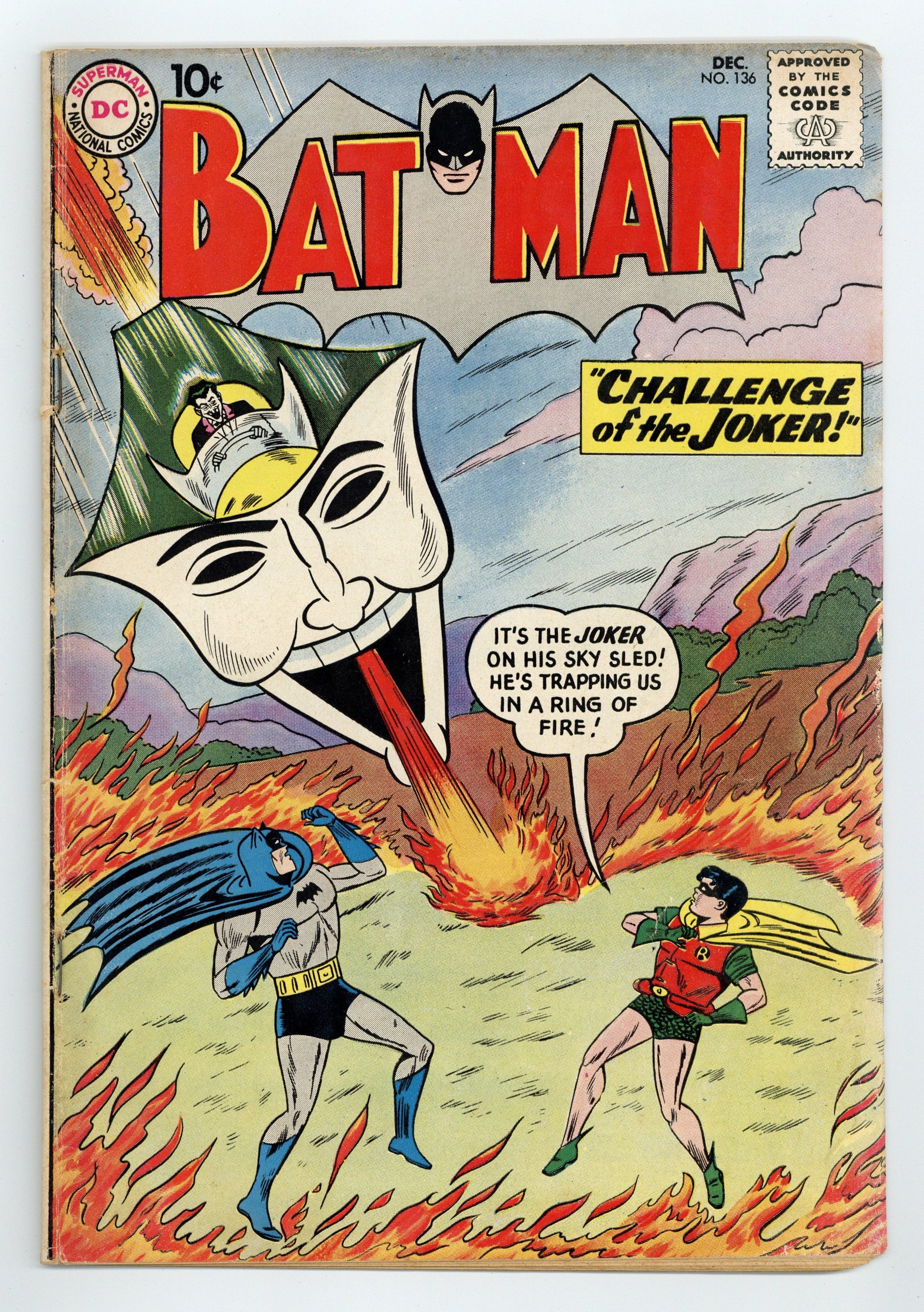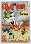 Ends Apr 14 7:44 PM CST Bid History 5 bids Current Bid $52 Your Secret Max Bid If you'd like to bid, please log in or register. Cover by Sheldon Moldoff. "The Case of the Crazy Crimes," script by Bill Finger, pencils by Sheldon Moldoff, inks by Charles Paris; To have "some fun," Bat-Mite creates a series of imaginary villains for the Batman to overcome. The Batman Whirly-Word Game puzzle page. Children of Tomorrow! public service announcement, script by Jack Schiff, art by Bernard Baily. "The Town that Hated Batman," script by Bill Finger, pencils by Sheldon Moldoff, inks by Charles Paris; Batman visits an old mining town seeking a criminal, but when he begins asking questions about the man, the people become hostile toward the Caped Crusader. One-page Warden Willis story by Henry Boltinoff. "The Challenge of the Joker," script by Bill Finger, pencils by Sheldon Moldoff, inks by Charles Paris; Batman faces the Joker, who, this time, uses the four basic elements to commit his crimes. One-page Strange Old Laws story by Henry Boltinoff. 36 Pages, Full Color. Cover price $0.10.