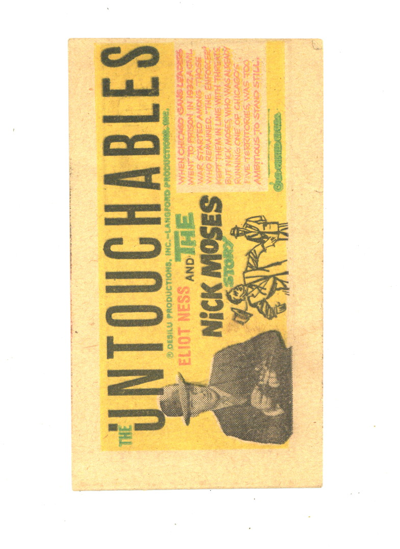 Published 1962 by Leaf Brands.$49.00Leaf Brands/Topps Bubble Gum Untouchables TV Promo "The Nick Moses Story". Newsprint 2 1/2-in. x 4 1/2-in. 8 Pages Full Color.