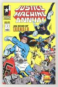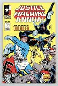 Published 1983 by Texas Comics.$12.00Wrap around cover by Mike Golden and Mike Gustovich. "An Echo of Thunder." 43 pages. Story by Bill Loebs. Pencils by Bill Reinhold. Inks by Jeff Dee and Bill Anderson. How about that, an annual where the title group doesn't even appear on the cover. Fortunately they are inside, where they team up with the Thunder Agents as they endeavor to stop the Nazi Von Geist from using his army of super soldiers to take over the United Nations. This story continues plot elements from the Noble comics Justice Machine series. Sub plots were to be continued in Texas Comics Justice Machine #1. This issue was never published, but the material was eventually published in 1990 as the Justice Machine Summer Spectacular by Innovation. "The shape of things to come." 20 pages. Story and pencils by Bill Willingham. Inks by Bill Anderson. 1st appearance of The Elementals. Shapeshifter is tasked by her employer to find out everything she can about the new group The Elementals. And what better way to determine their abilities than to attack them! 64 pages. Full color. Cover price $2.95.