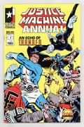 Published 1983 by Texas Comics.$13.00Wrap around cover by Mike Golden and Mike Gustovich. "An Echo of Thunder." 43 pages. Story by Bill Loebs. Pencils by Bill Reinhold. Inks by Jeff Dee and Bill Anderson. How about that, an annual where the title group doesn't even appear on the cover. Fortunately they are inside, where they team up with the Thunder Agents as they endeavor to stop the Nazi Von Geist from using his army of super soldiers to take over the United Nations. This story continues plot elements from the Noble comics Justice Machine series. Sub plots were to be continued in Texas Comics Justice Machine #1. This issue was never published, but the material was eventually published in 1990 as the Justice Machine Summer Spectacular by Innovation. "The shape of things to come." 20 pages. Story and pencils by Bill Willingham. Inks by Bill Anderson. 1st appearance of The Elementals. Shapeshifter is tasked by her employer to find out everything she can about the new group The Elementals. And what better way to determine their abilities than to attack them! 64 pages. Full color. Cover price $2.95.