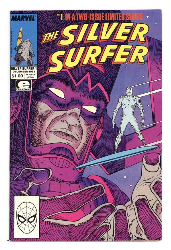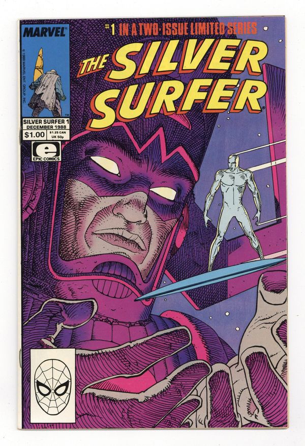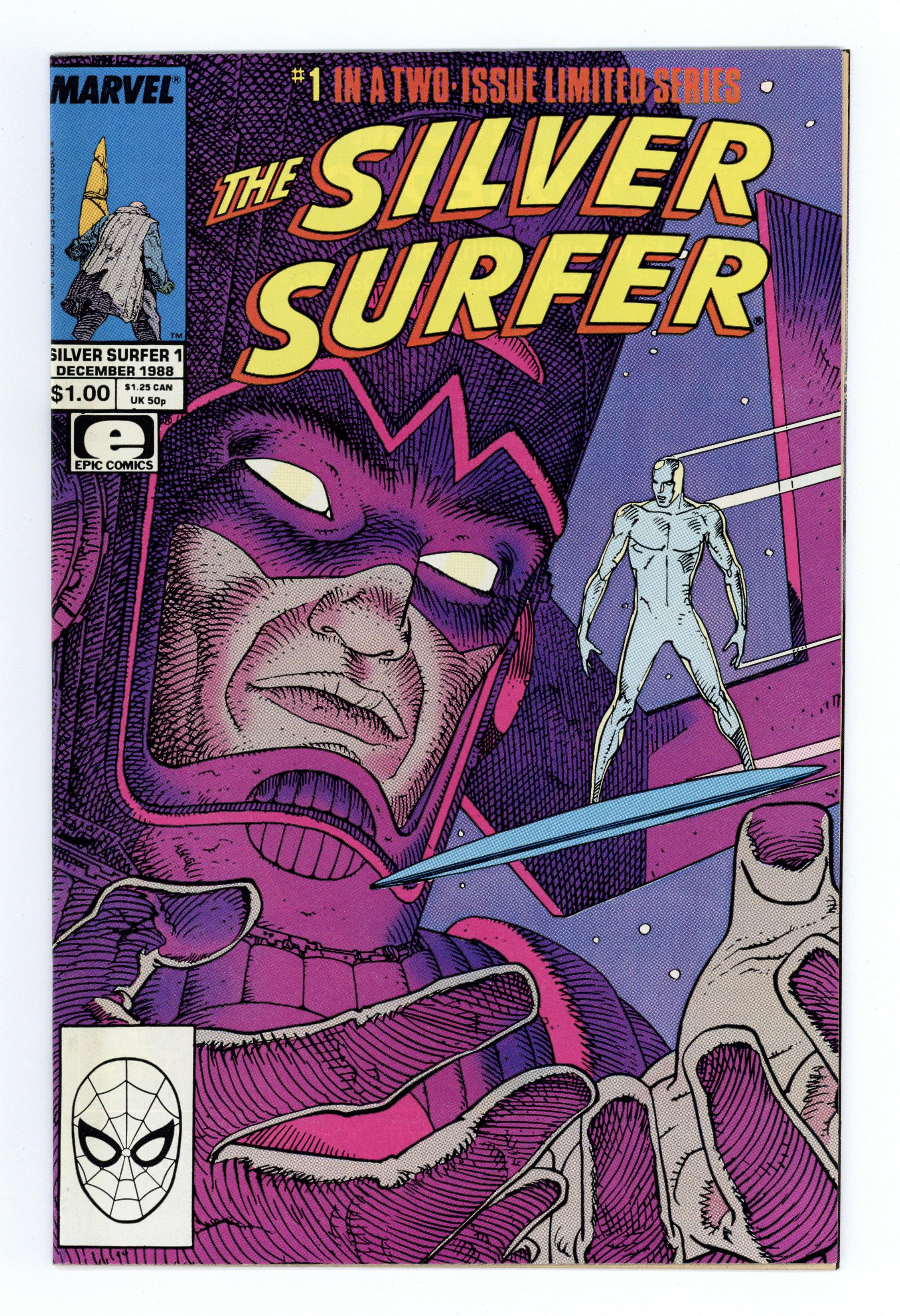 $8.00Direct Edition. Cover by Moebius. Parable, script by Stan Lee, art by Moebius; The Silver Surfer is a street person on Earth when Galactus arrives and proclaims himself God and tells everyone to have a good time. 36 pgs., full color. $1.00. Cover price $1.00.
