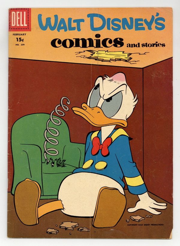 Tags: Disney Ducks & MicePublished Feb 1958 by Dell/Gold Key.$16.7515¢ Price Variant. Cover by Carl Barks. Stories and art by Carl Barks, Tony Strobl, Carl Fallberg, Jack Bradbury, Paul Murry, Al Hubbard, Bob Karp, and Al Taliaferro. Sometimes listed as Vol. 18 #5. The long-running vehicle for Disney character comics featured art by Carl Barks, the legendary Good Duck Artist. While investigating the strange events in Lonely Valley, Mickey and Goofy encounter two suspicious miners. In a story by Barks, Donald becomes a postman in a mini-copter. Donald tries to rescue Daisy's stuck car and gets his own car stuck. Donald Duck; Scamp; Chip 'n' Dale; Broken Resolutions; Mickey Mouse: The Mystery of Lonely Valley. 32 pages, Full Color. Cover price $0.15.