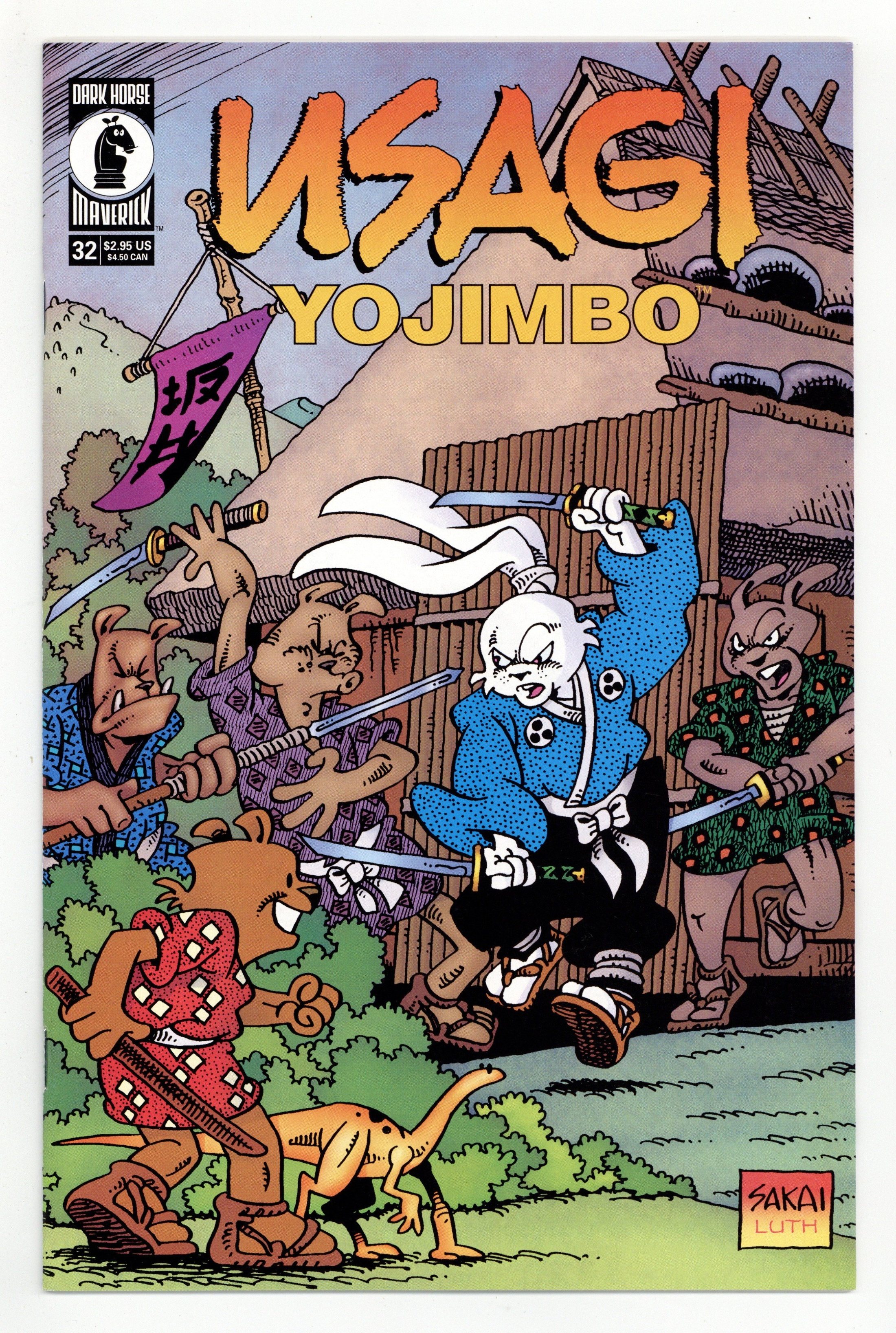 Story and art by Stan Sakai. This issue features two stories: in the first, Usagi meets a young boy determined to live a life of adventure. The boy follows the long-eared ronin hoping to learn swordsmanship. When Usagi refuses to teach him, he arranges his own demonstration. In this issue's second story, more treachery surfaces in the ranks of the Neko Ninja Clan when two lovers break the ninja code by escaping the clan. 32 pages, B&W. Cover price $2.95.