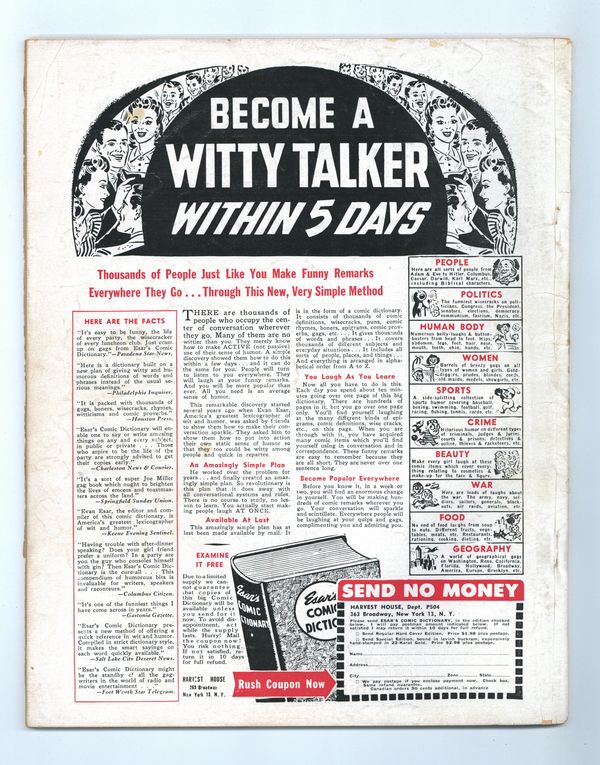 $17.50- Front cover detached 25%. Back cover detached 5%. Staple rust: Slight.