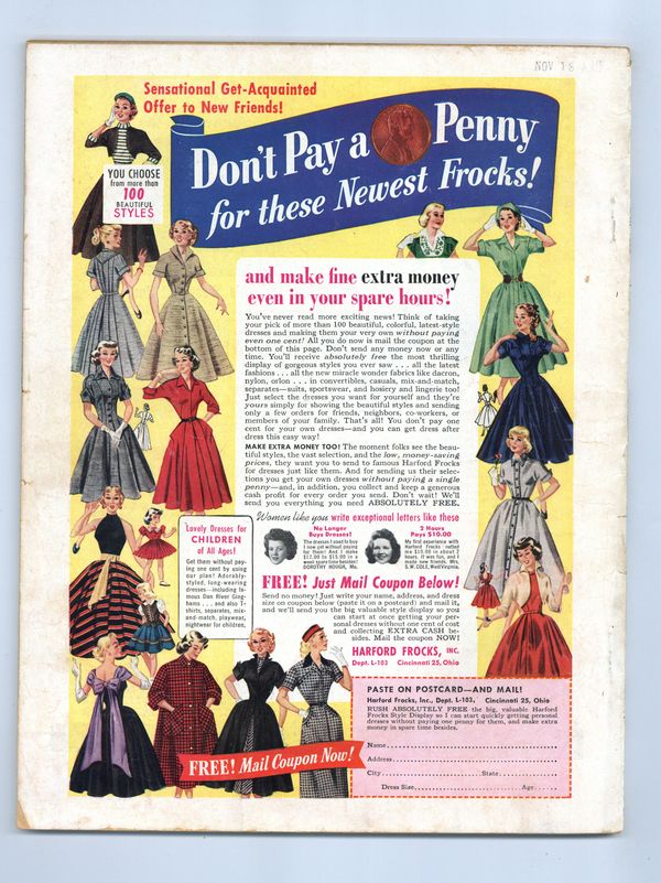 Published Dec 1953 by Ace Magazines.$30.50- Front cover detached 15%. Back cover detached 10%. Staple rust: Slight.