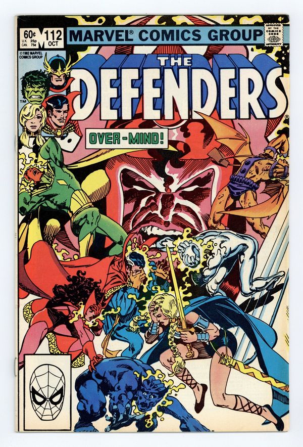 Defenders/Squadron Supreme team-up - "Strange Visitor from Another Planet!" Part 1 of 3. Guest-starring the Vision and the Scarlet Witch. Script by J.M. DeMatteis. Pencils by Don Perlin. Inks by Mike Gustovich. Cover by Brent Anderson. Following the events of Avengers Annual #11, the Defenders host a party at their Upper West Side brownstone. But the festivities are halted when Dr. Strange dramatically appears in astral form! The good doctor has discovered a crisis on another Earth. Specifically, Earth-712 --the home of the Squadron Supreme! And it's a place the Beast, Wanda, and the Vision know very well. What has gone wrong on the squadron's world this time? Hyperion and Nighthawk spin an unbelievable tale -- of how theOvermind took over the United States and the Squadron Supreme! Cameo appearances by August Masters, Chorus, and Vera Cantor. Flashback cameo by the Avengers to recap the Serpent Crown saga in Avengers 141-148. Defenders Lineup: Beast, Dr. Strange, Gargoyle, Hellstorm, Hulk, Silver Surfer, Sub-Mariner, and Valkyrie. (Note: The Overmind previously appeared in Fantastic Four 116.) 36 pages. Cover price $0.60.