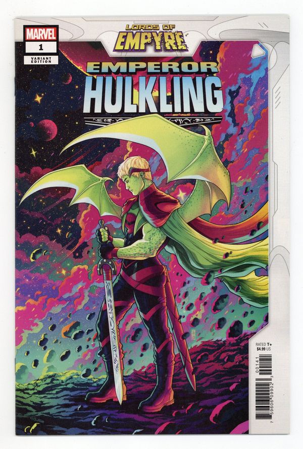 $12.00Limited 1 for 25 Retailer Incentive Variant Cover. Written by Chip Zdarsky and Anthony Oliveira. Art by Manuel Garcia. Cover by Jen Bartel. DESTINY FULFILLED! The child of the Kree hero Mar-Vell and Skrull Princess Anelle, Dorrek VIII - known on Earth as 'Teddy' - has spent years evading the clutches of both bloodthirsty empires. But now fate has caught up to him. The Kree and Skrull worlds are aligned - and only a man born of both can lead them. But what has led Hulkling to abandon Earth and the Avengers he's fought beside? And what will become of his fiancé, the hero Wiccan? Star writers Chip Zdarsky and Anthony Oliveira team up with artist Manual Garcia for a can't-miss one-shot! 36 pages, full color. Rated T+ Cover price $4.99.