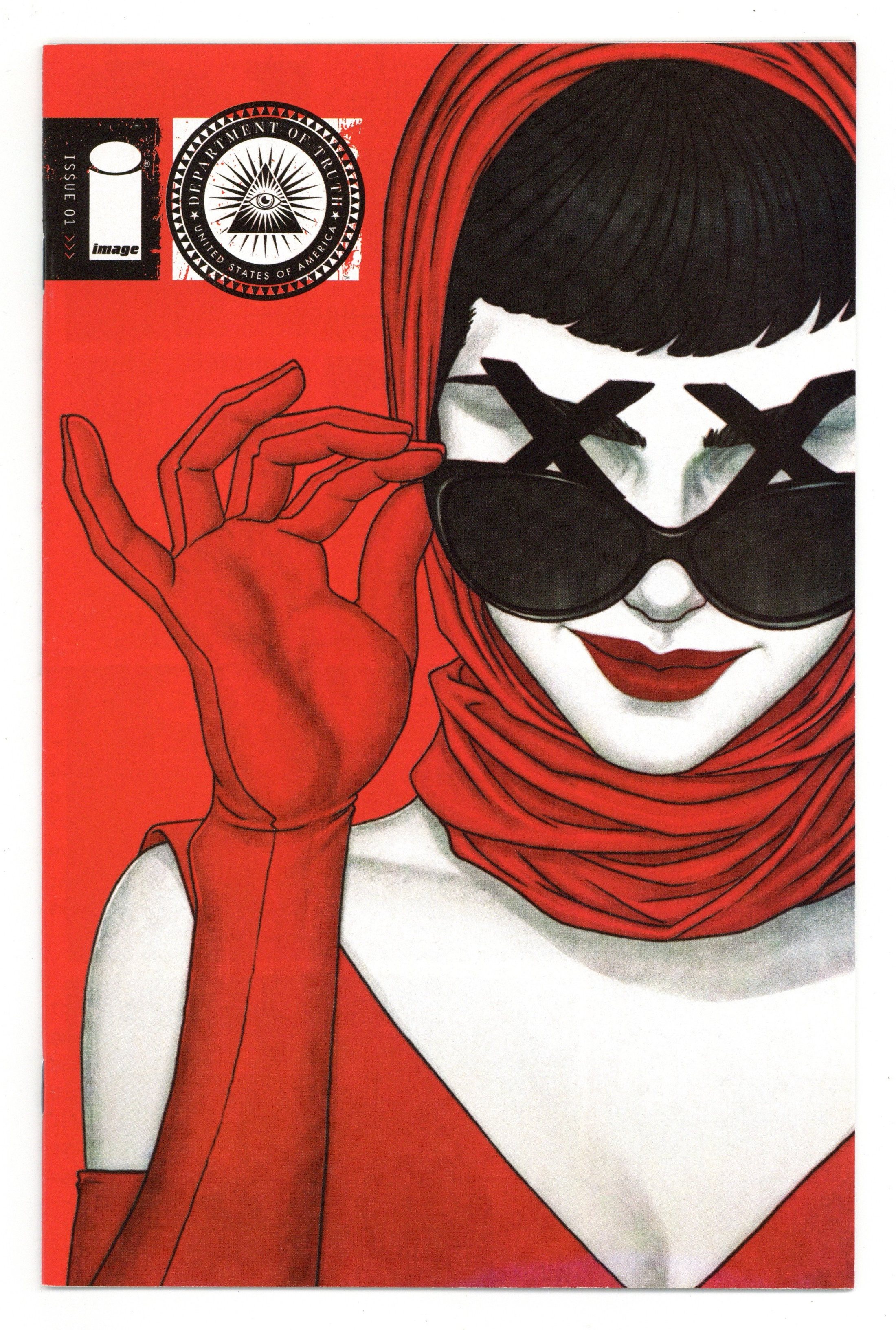 $18.00Written by James Tynion IV. Art by Martin Simmonds. Cover by Jenny Frison. SERIES PREMIERE! Cole Turner has studied conspiracy theories all his life, but he isn't prepared for what happens when he discovers that all of them are true, from the JFK assassination to flat Earth theory and reptilian shapeshifters. One organization has been covering them up for generations. What is the deep, dark secret behind the Department of Truth? 32 pages, full color. Rated M Cover price $3.99.