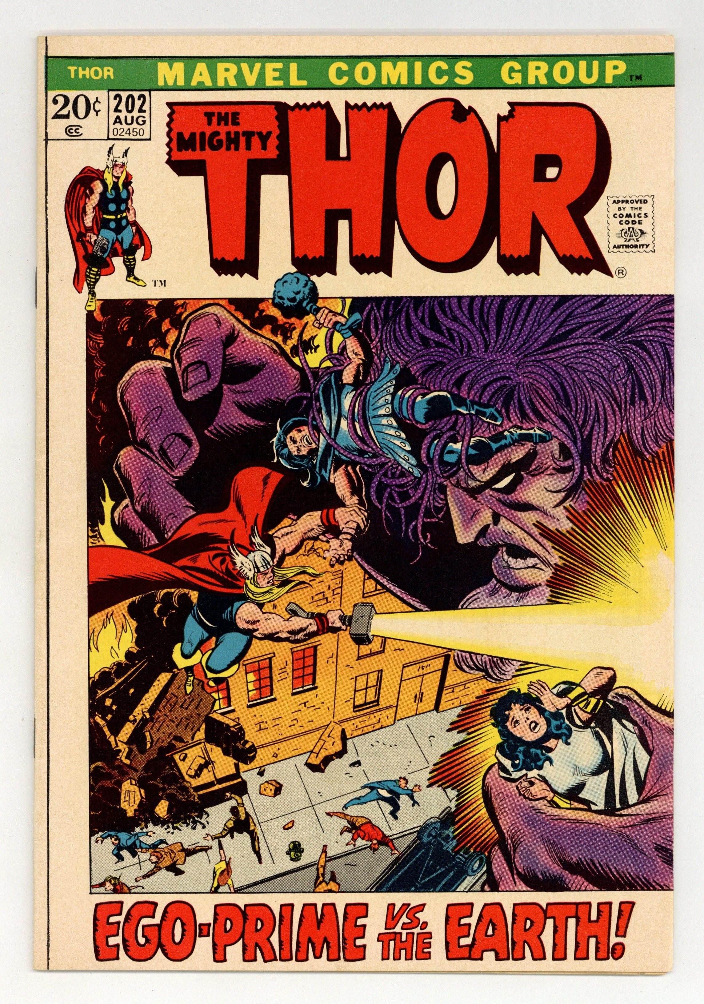 Cover pencils by John Buscema, John Romita (alterations), and Marie Severin (alterations), inks by John Romita (alterations) and Marie Severin (alterations). "And None Dare Stand 'Gainst Ego-Prime!", script by Gerry Conway, pencils by John Buscema, inks by Vince Colletta; Ego-Prime has come to Earth, and not all the Asgardian's power can stop him; Meanwhile, Heimdall finds one of the people in his quest - Jackson Kimbal. Appearances by Sif, Hogun, Fandral, Volstagg, Karnilla, Hildegarde, Heimdall, and Odin. 36 pgs., full color. $0.20. Cover price $0.20.
