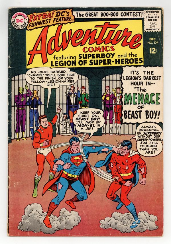 $12.00Cover pencils by Curt Swan, inks by George Klein. Hunters of the Super-Beasts--Tales of the Legion of Super-Heroes, script by Edmond Hamilton, pencils by John Forte, inks by Sheldon Moldoff; The Legionnaires need Beast Boy for a case, but he has turned his back on humanity. The Night of March 31st, script by Otto Binder, pencils by Curt Swan, inks by Sheldon Moldoff; an April Fool's Day story starring Superman. Rocky and Bullwinkle star in a one-page Cheerios ad. 36 Pages, Full Color. Cover price $0.12.