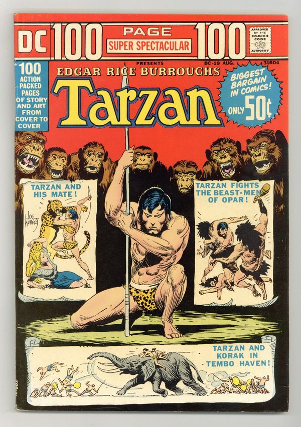 Tags: DC 100 Page Super Spectacular (part 19)$19.00Featuring the Tarzan reprints by Edgar Rice Burroughs: "The Elephant's Guardian," "Prisoners in Opar," "Jane's own Story: How I Met Tarzan,' Tarzan in Tembo-Haven," and a look at the people in Tarzan's Africa. Cover price $0.50.