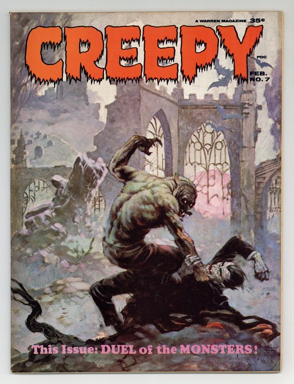 Stories in this issue include: The Duel of the Monster! by Archie Goodwin and Angelo Torres; Image of Bluebeard! by Bill Pearson and Joe Orlando; Rude Awakening! by Archie Goodwin and Alex Toth; Drink Deep! by Otto Binder and John Severin; The Body-Snatcher by Archie Goodwin and Reed Crandall (from the story by Robert Louis Stevenson); Blood of Krylon! by Archie Goodwin and Gray Morrow; and Hot Spell! by Archie Goodwin and Reed Crandall. The Creepy Fan Club page debuts. Cover art by Frank Frazetta. Cover price $0.35.