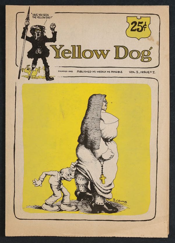 Tags: UndergroundPublished May 1973 by Print Mint.$27.002nd printing. 25¢ cover price. Volume 1, Issue 1. This is the 5th anniversary reprint edition. Originally packaged with issues 1-12 in a sealed envelope. Cover by Robert Crumb. Elsewhere, T, Crumb, Beck, Martin, Thompson, Cilensek, and Gardner. 8-in. x 11 1/2-in., 8 pages, Fold-Out Newspaper Style, PC/PBW, MATURE READERS Cover price $0.25.