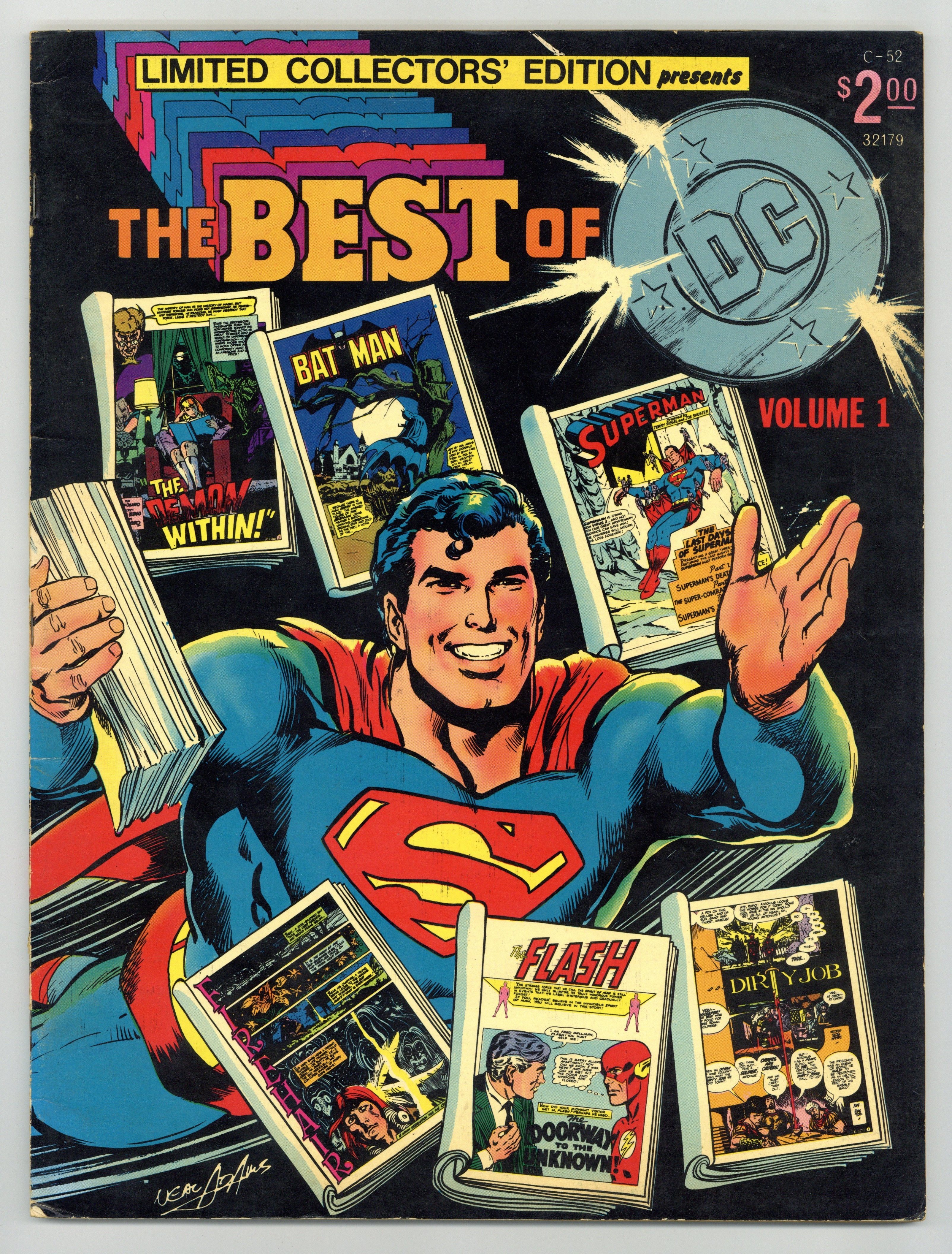 Tags: Treasury Sized Editions (part C52)$14.25Limited Collectors' Edition: Best of DC. Reprints by Neal Adams, Joe Kubert, Alex Toth, Jim Aparo, and Curt Swan. Adams wraparound cover. Size is 10 x 13-1/2" (about the size of a Life magazine). Cover price $2.00.