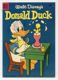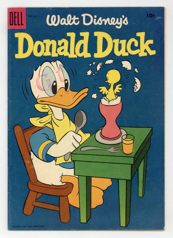 Published Jun 1955 by Dell/Gold Key/Whitman.$8.40Cover by Paul Murry. Stories and art by Tony Strobl and John Liggera. The classic adventures of Disney's Donald Duck, featuring art by Carl Barks and other great Disney artists. Donald builds a submarine out of an airplane chassis and sets out to rescue Scrooge, who has been captured on a remote island. In another story, taxi-driver Donald is hijacked by a bank robber. Potato Cone; Rainbow Island Rendezvous; The Unexpected Passenger; A Stone's Throw; Stubborn Chair. 32 pages, Full Color. Cover price $0.10.