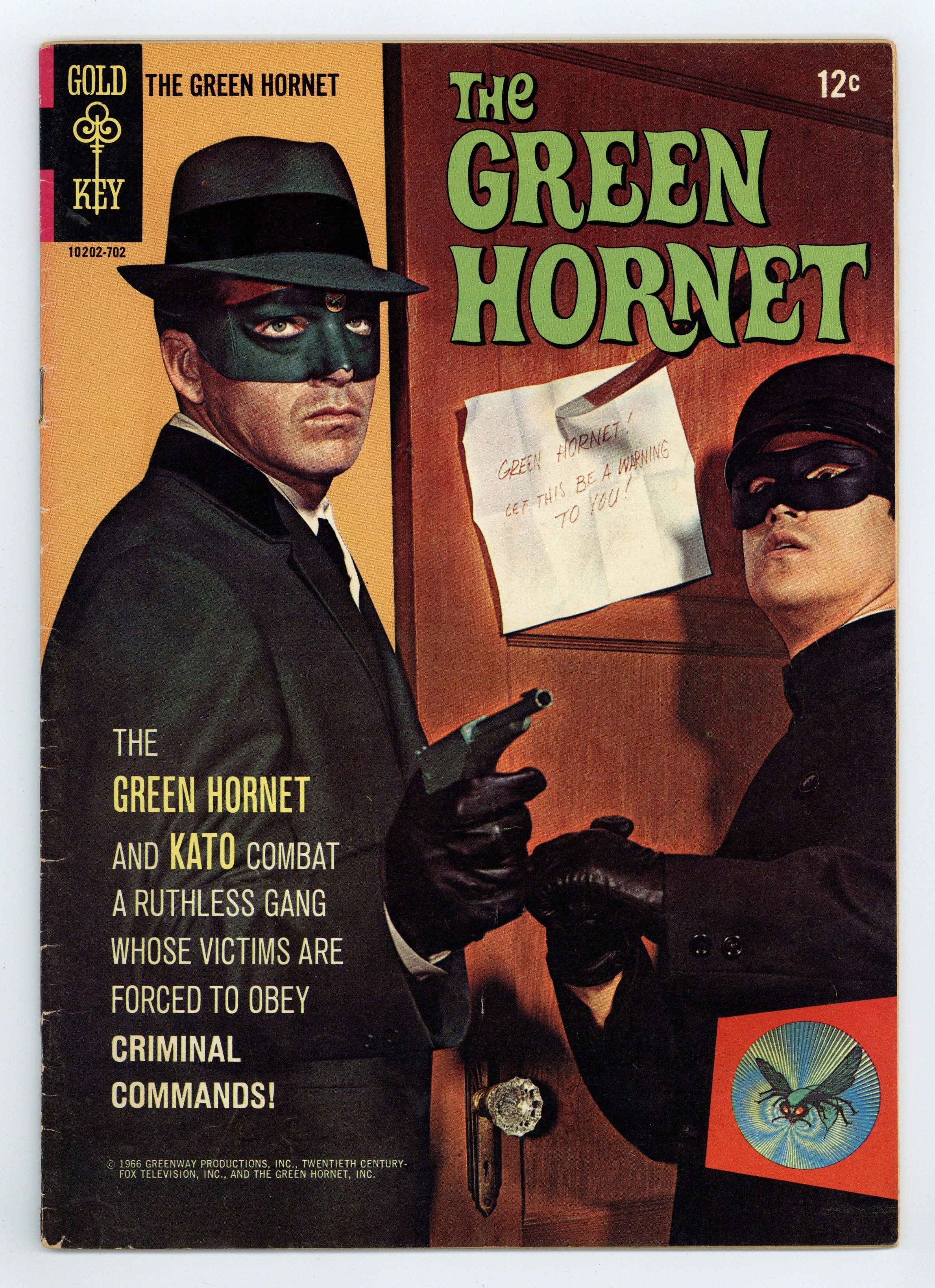 Number on cover is 10202-702. Photo cover of Van Williams as the Green Hornet and Bruce Lee as Kato. Intro with photo. Ring of Terror, script by Paul Newman, art by Dan Spiegle; The Green Hornet takes on criminals who use a drug to make upstanding citizens cooperate in their crimes with no memory of what they have done, including no less than Frank Scanlon! Photo of Bruce Lee as "Britt's houseboy" and a comic drawing of The Green Hornet's "crime-fighting aide" by Dan Spiegel, with brief textual description of the character(s). Photo of Wende Wagner as Lenore "Casey" Case, with brief textual description of the character. A back-cover black and white TV series photo of the Green Hornet and Kato crouching in front of the Black Beauty, with color borders. Based on the classic TV series. 36 pgs. $0.12. Cover price $0.12.