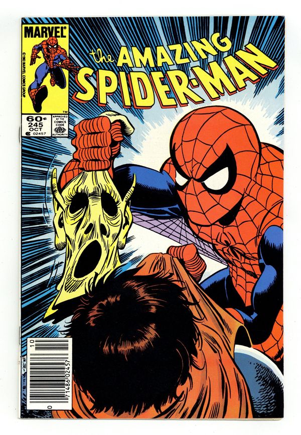 Tags: Spider-Man$12.00Newsstand Edition. "Sacrifice Play!" Part 2 of 2. Fourth appearance of the Hobgoblin. Script by Roger Stern. Art by John Romita Jr. (breakdowns) and Dave Simons (finishes). Cover by John Romita Jr. and Dave Simons. The wondrous wall-crawler thinks he knows who the Hobgoblin is! Lefty Donovan! Who? Apparently, the evidence from the police points in Lefty's direction! So, the web-slinger conducts a relentless search! And in the skies over Times Square, the Amazing Spider-Man and the (suddenly super-strong) Hobgoblin clash again! Will this battle solve the mystery of the goblin's identity? Or just add to the puzzle? Cameo appearances by Mary Jane Watson, Ned Leeds, and Betty Brant Leeds. (Note: The Hobgoblin appears next in Spectacular Spider-Man 85 -- a must read to keep up with the Hobgoblin's development.) 36 pgs. Cover price $0.60.