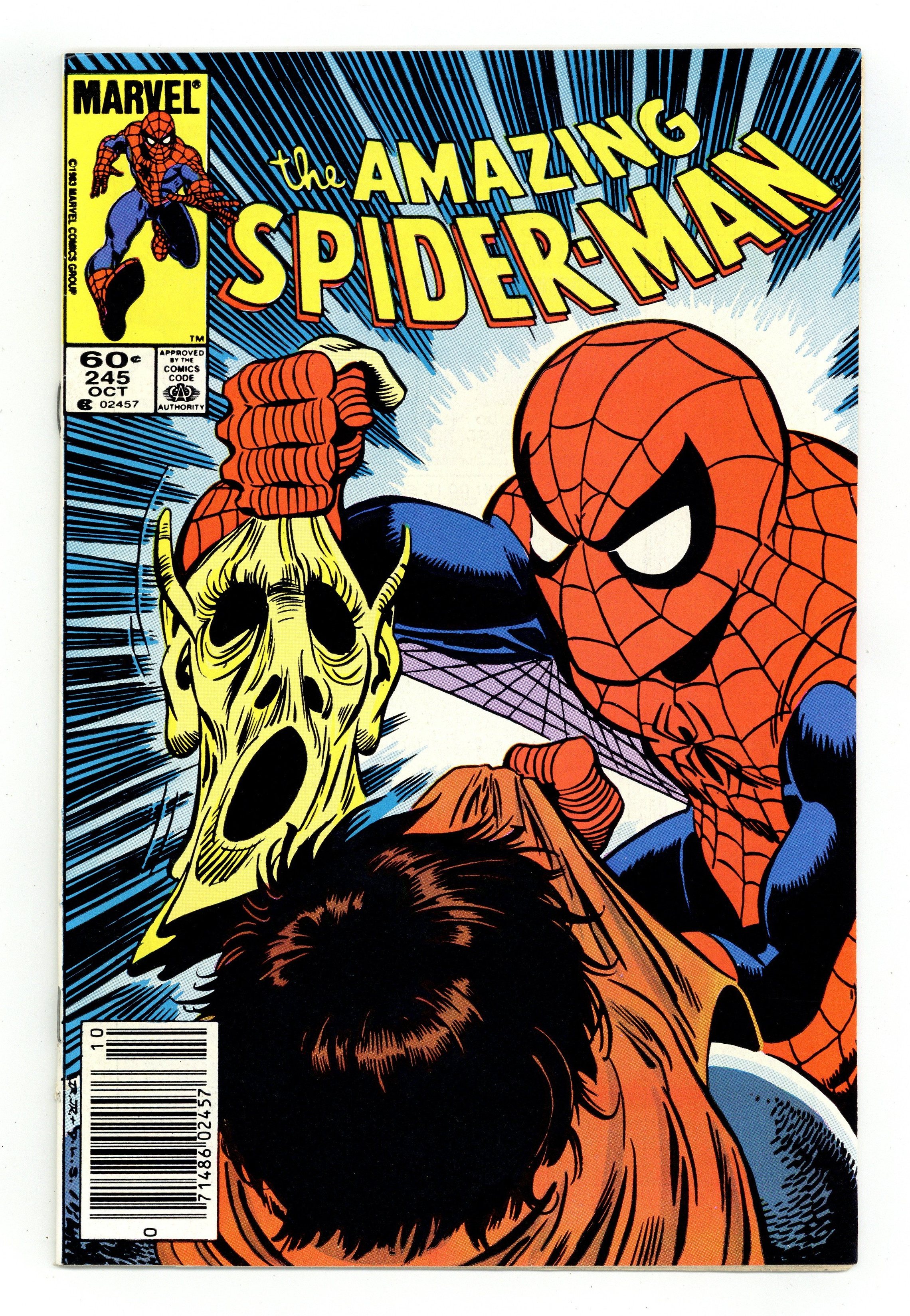 Tags: Spider-Man$16.00Newsstand Edition. "Sacrifice Play!" Part 2 of 2. Fourth appearance of the Hobgoblin. Script by Roger Stern. Art by John Romita Jr. (breakdowns) and Dave Simons (finishes). Cover by John Romita Jr. and Dave Simons. The wondrous wall-crawler thinks he knows who the Hobgoblin is! Lefty Donovan! Who? Apparently, the evidence from the police points in Lefty's direction! So, the web-slinger conducts a relentless search! And in the skies over Times Square, the Amazing Spider-Man and the (suddenly super-strong) Hobgoblin clash again! Will this battle solve the mystery of the goblin's identity? Or just add to the puzzle? Cameo appearances by Mary Jane Watson, Ned Leeds, and Betty Brant Leeds. (Note: The Hobgoblin appears next in Spectacular Spider-Man 85 -- a must read to keep up with the Hobgoblin's development.) 36 pgs. Cover price $0.60.