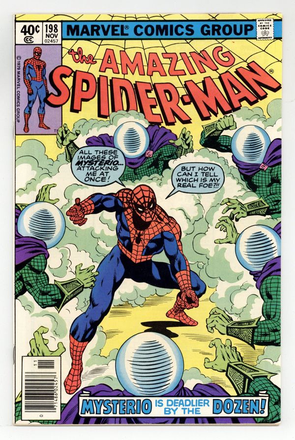 Tags: Spider-Man$20.00Newsstand Edition. "Mysterio is Deadlier by the Dozen!" Part 1 of 2. Script by Marv Wolfman. Art by Sal Buscema (layouts) and Jim Mooney (finishes). Cover by Keith Pollard and Bob McLeod. At last the web-slinger arrives at Restwell Nursing Home to investigate his aunt's "apparent" death! The spectacular one anticipates a hard-hitting clash with his old adversary, but the Master of Illusion is at the top of his game! Spidey can't lay a glove on Mysterio! Perception trumps reality for your friendly neighborhood Spider-Man! Appearances by Dr. Marla Madison, J. Jonah Jameson, and the burglar. Flashback cameo by the second Mysterio (aka Danny Berkhart). (Notes: Spider-Man previously clashed with the original Mysterio in Amazing Spider-Man 66 & 67. The wall-crawler battled the second Mysterio in Amazing Spider-Man 141 & 142.) 36 pages. Cover price $0.40.