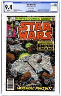 Tags: Star Wars$32.00Newsstand Edition. The Empire Strikes Back: Part 3 of 6. "Imperial Pursuit!" Script by Archie Goodwin, art by Al Williamson and Carlos Garzon. Note: Part 3 of movie adaptation; based on the movie script; Williamson and Garzon both pencil and ink the art for this series. Plus: 5-page text article "Building an Empire--Marvel Style." Cover by Williamson and Garzon. Cover price $0.50.