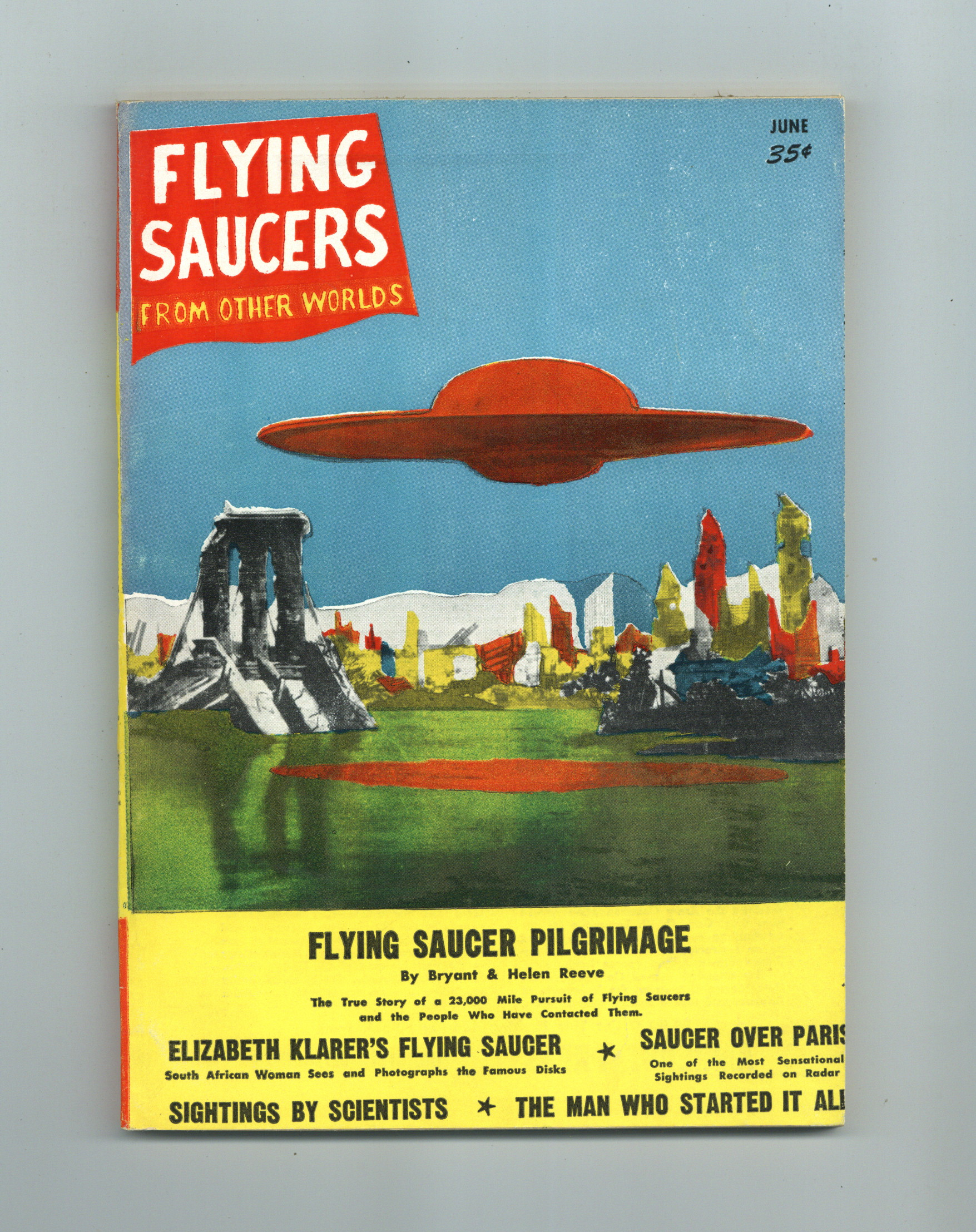 Published Jun 1957 by Palmer Publications.$45.00Published by Raymond A. Palmer, science fiction writer and editor of Amazing Stories and other publications. 6.5" x 9.25", 100 pages, B&W. NOTE: Fist issue, later changed title overlaps with the Palmer edited Other Worlds Science Stories. Cover price $0.35.