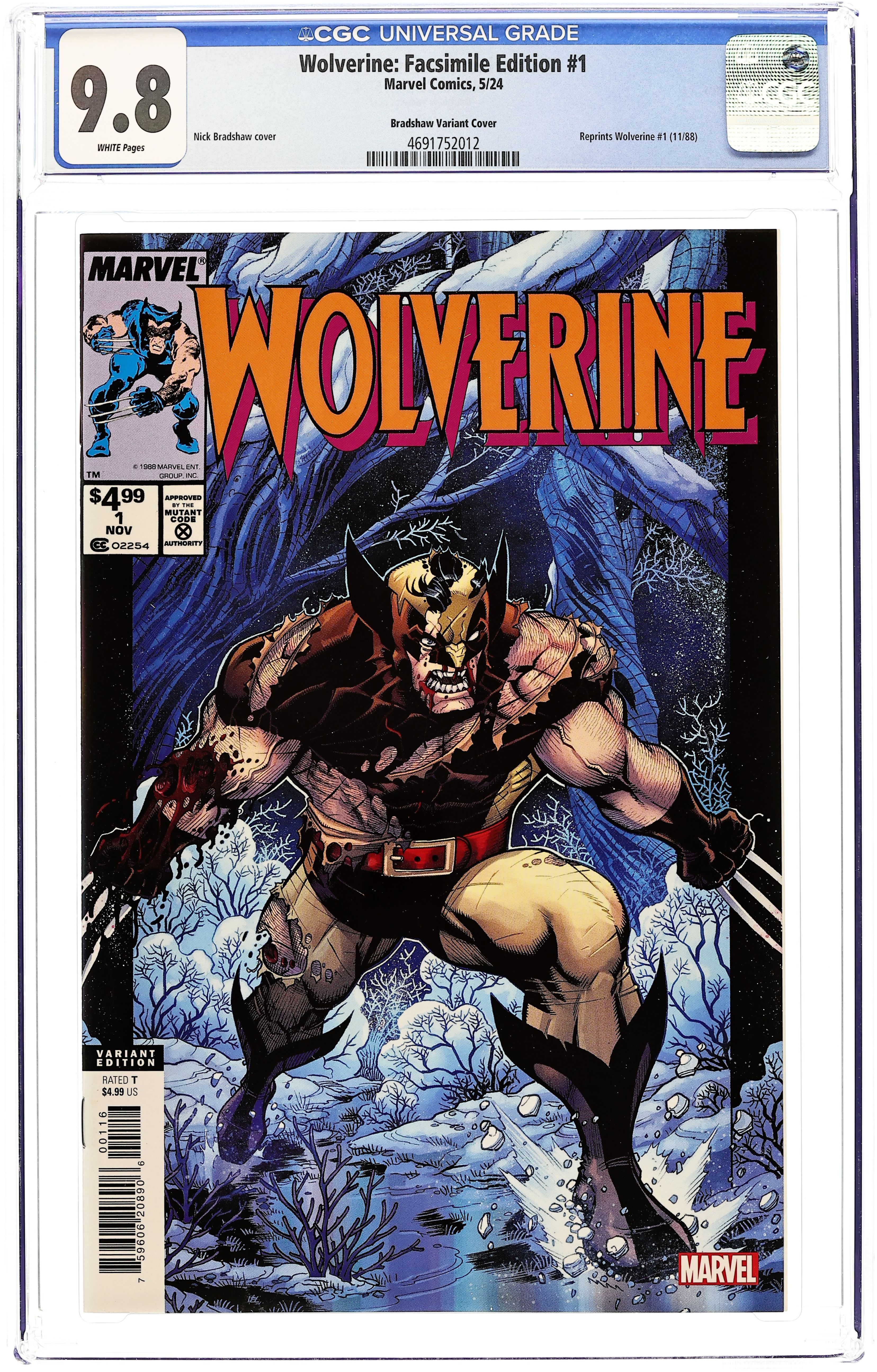 Limited 1 for 25 Retailer Incentive Variant Cover. Written by Chris Claremont. Art by John Buscema. Cover by Nick Bradshaw. The debut issue of Wolverine's first-ever, long-running ongoing series! Chris Claremont teams with comic-book giant John Buscema to send Logan on a sword quest - fighting pirates in Indonesia! From there, the action heads to Madripoor, where a cult seeks the black blade known as the Muramasa Sword. Whether wearing his stripped-down black suit and no mask or donning his signature "Patch" disguise, this is a Wolverine unlike anything ever seen before - slicing and dicing armies of pirates and cultists! It's one of the all-time great Marvel comic books, boldly re-presented in its original form, ads and all! Reprinting WOLVERINE (1988) #1. 32 pages, full color. Rated T Cover price $4.99.
