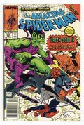 Tags: Spider-Man$33.00Newsstand Edition. "The Goblin War!" Inferno crossover. Script by David Michelinie. Art by Todd McFarlane. Cover by Todd McFarlane. Story continues from Web of Spider-Man 47. With his family in danger, the Green Goblin rides again! Oh my, does Harry know what he's doing by challenging the might of the Hobgoblin? In the skies above the Osborn Chemical Company, the pumpkin bombs fly as the goblins clash! And naturally your friendly neighborhood Spider-Man is caught in the middle! Meanwhile the effects of Inferno begin affecting Dr. Curt Connors. Uh-oh, could an appearance from the Lethal Lizard be in the near future? Yesss! Story continues in Spectacular Spider-Man 147. Cameo appearances by Mary Jane Watson, Liz Osborn, and J. Jonah Jameson. (Note: Harry Osborn dons the garb of the Green Goblin for the first time since Amazing Spider-Man 180.) 36 pgs. Cover price $1.00.