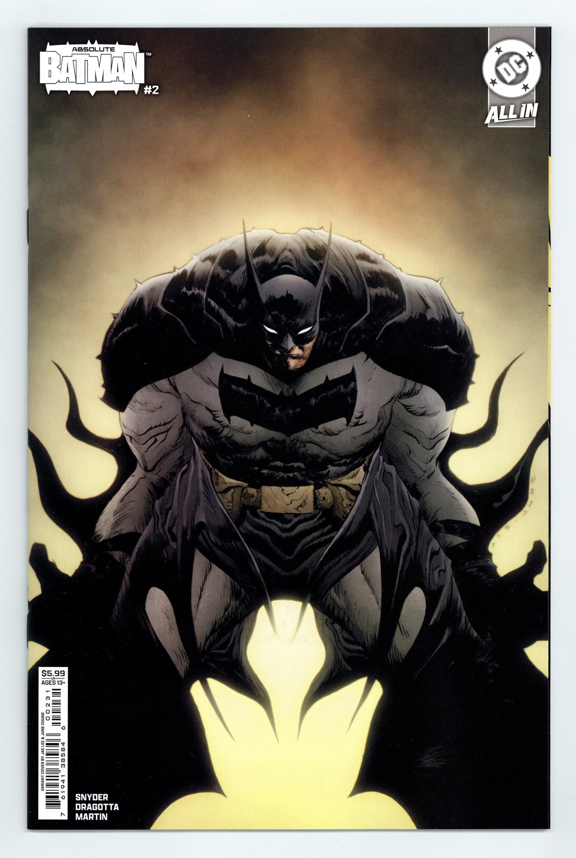 $26.50Written by Scott Snyder. Art by Nick Dragotta. Cover by Jae Lee & June Chung. SNYDER AND DRAGOTTA'S BRAND-NEW TAKE ON THE DARK KNIGHT RAMPAGES ON! Batman was born out of violence - a horrible tragedy that shaped the trajectory of his future. But when a vigilant MI6 agent starts tracking the lonely life of Bruce Wayne, he discovers the interconnectivity between a hero's shell life and the many layers of the Black Mask Gang. It's Batman versus Alfred Pennyworth! 32 pages, full color. Rated T+ Cover price $5.99.