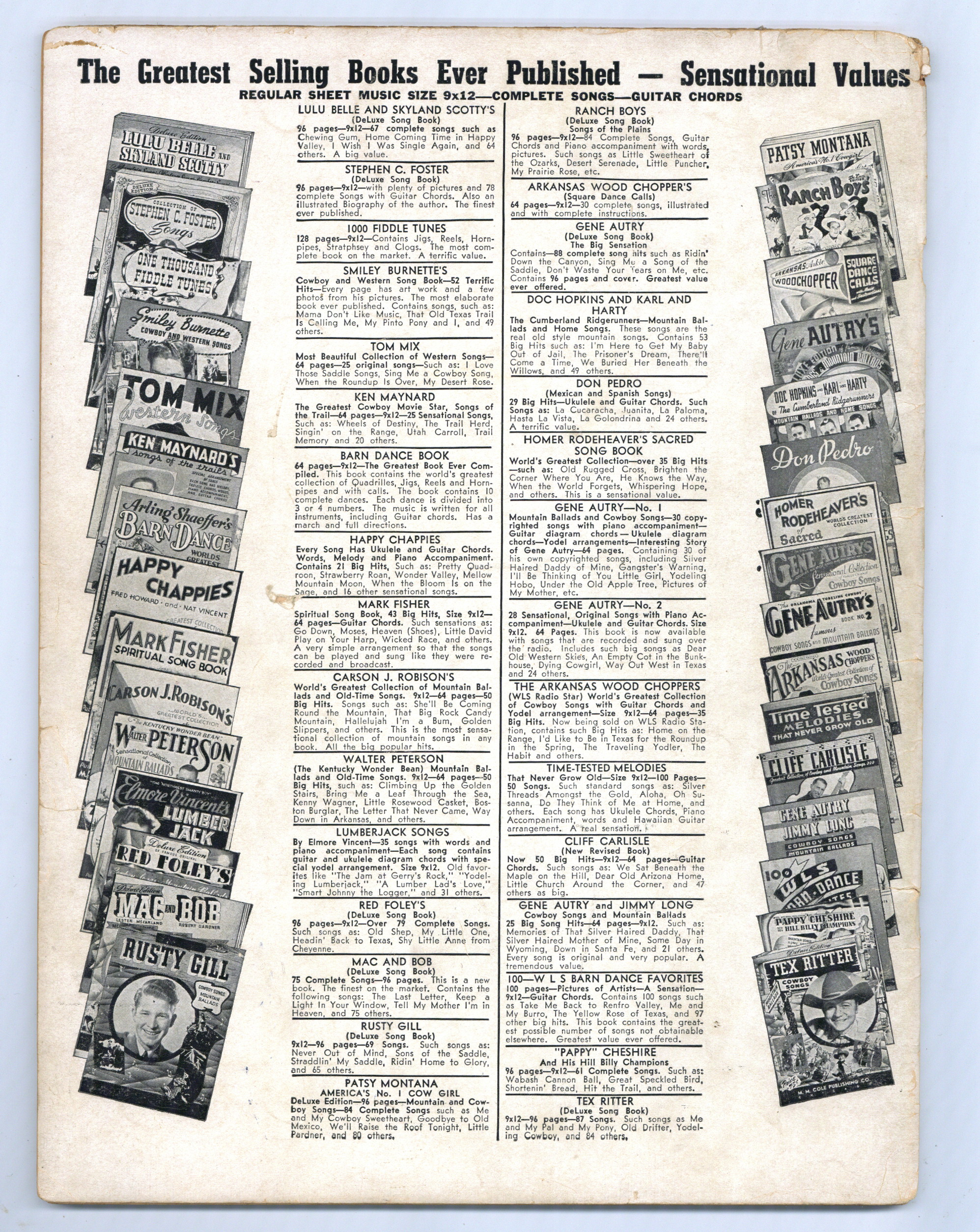 Subtitled "Sensational Collection of Famous Original Cowboy Songs and Mountain Ballads". Cover price $0.75.