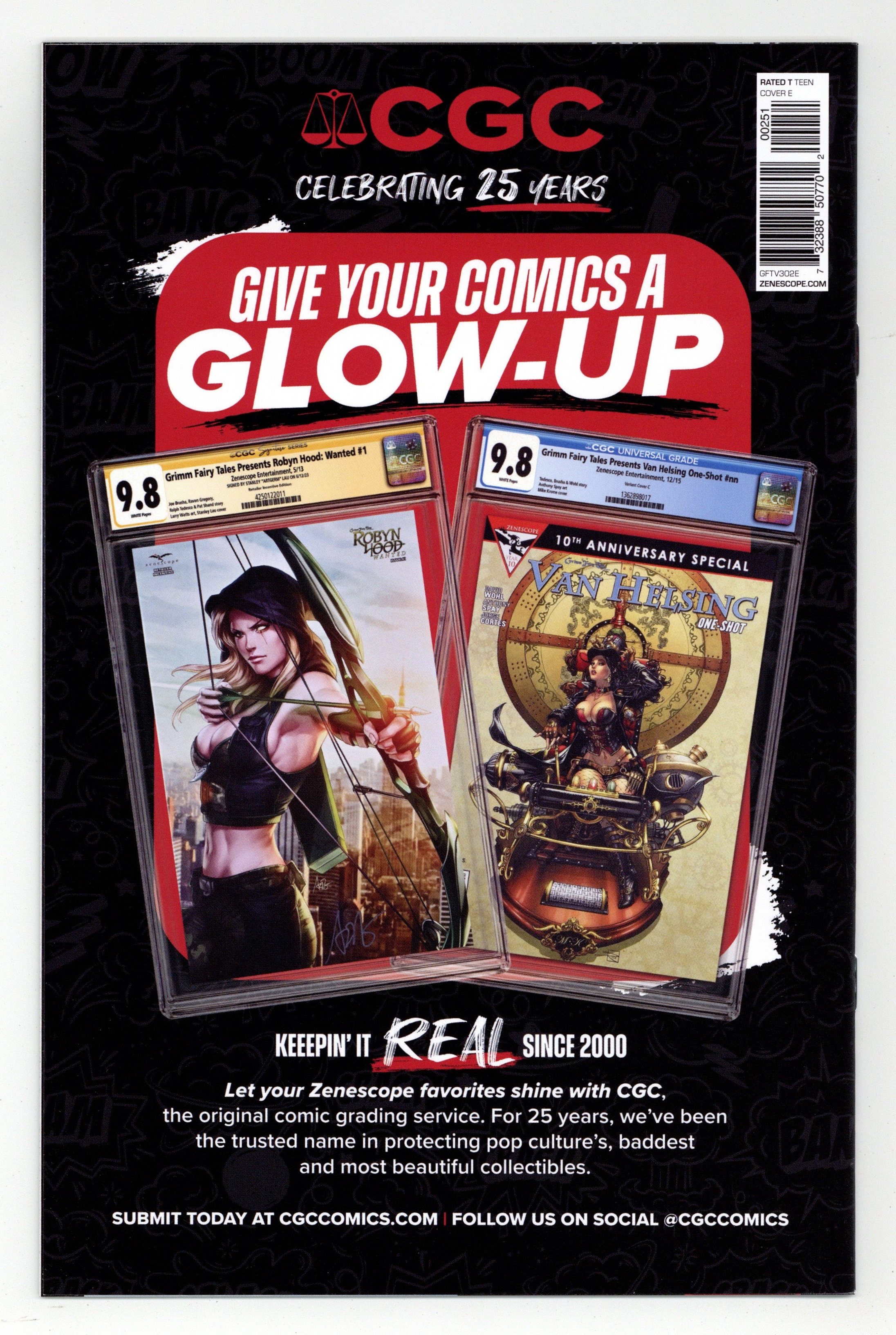 Published by Zenescope Entertainment.$40.00Limited 1 for 20 retailer incentive variant. Written by Joe Brusha. Art by Al Barrionuevo. Cover by Geebo Vigonte Tome of Blood and Shadow - Part 2. A new era for Zenescopes Flagship title continues here! The Tome of Blood and Shadow contains entries to all the monstrous creatures that exist in our realm—but there is a new scourge, the Hollowborn, that has no page in the hallowed book. Now, Red Agent is near death after facing just one in battle, leaving Keres and Shang in a frantic search to discover what they are, why theyre here and, most importantly, if they can be defeated before they destroy the hallowed halls Arcane Acre as well as all the heroes within! Cover price $10.00.