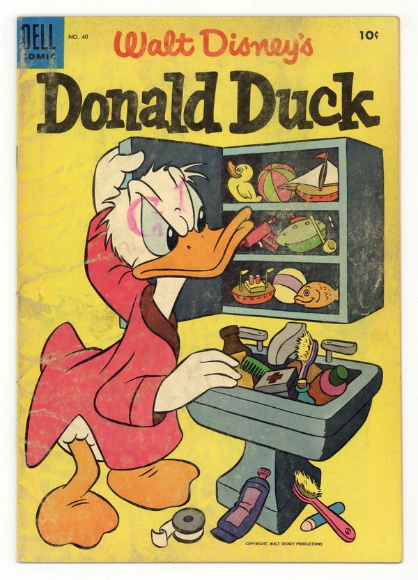 Cover by Paul Murry. Stories and art by Tony Strobl and John Liggera. The classic adventures of Disney's Donald Duck, featuring art by Carl Barks and other great Disney artists. Using a hypnotist, Scrooge convinces Donald to search the North Pole for a diamond, but it's all a ruse to get rid of the Beagle Boys. Reporter Donald tries to interview an opera singer on a stranded cruise ship. During a rained-out picnic, Daisy and Donald meet a waterlogged weatherman. Twice the Fun; The Kitchy-Kaw Diamond; Donald Duck Saves the Ship; Rainy Picnic; Door Shower. 32 pages, Full Color. Cover price $0.10.