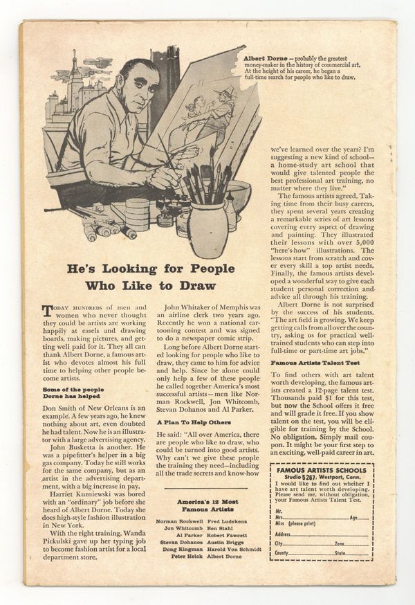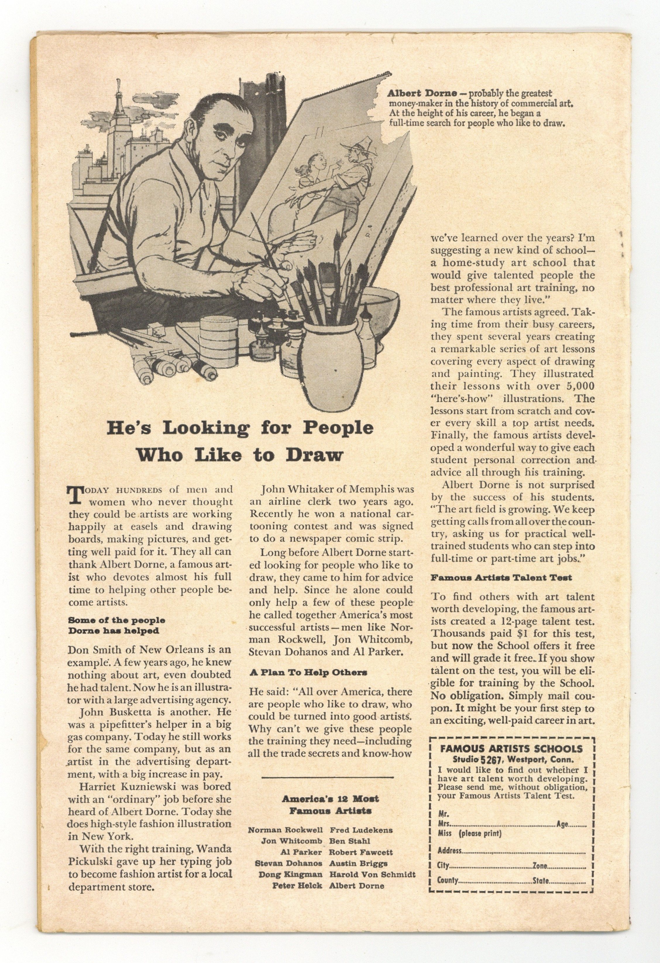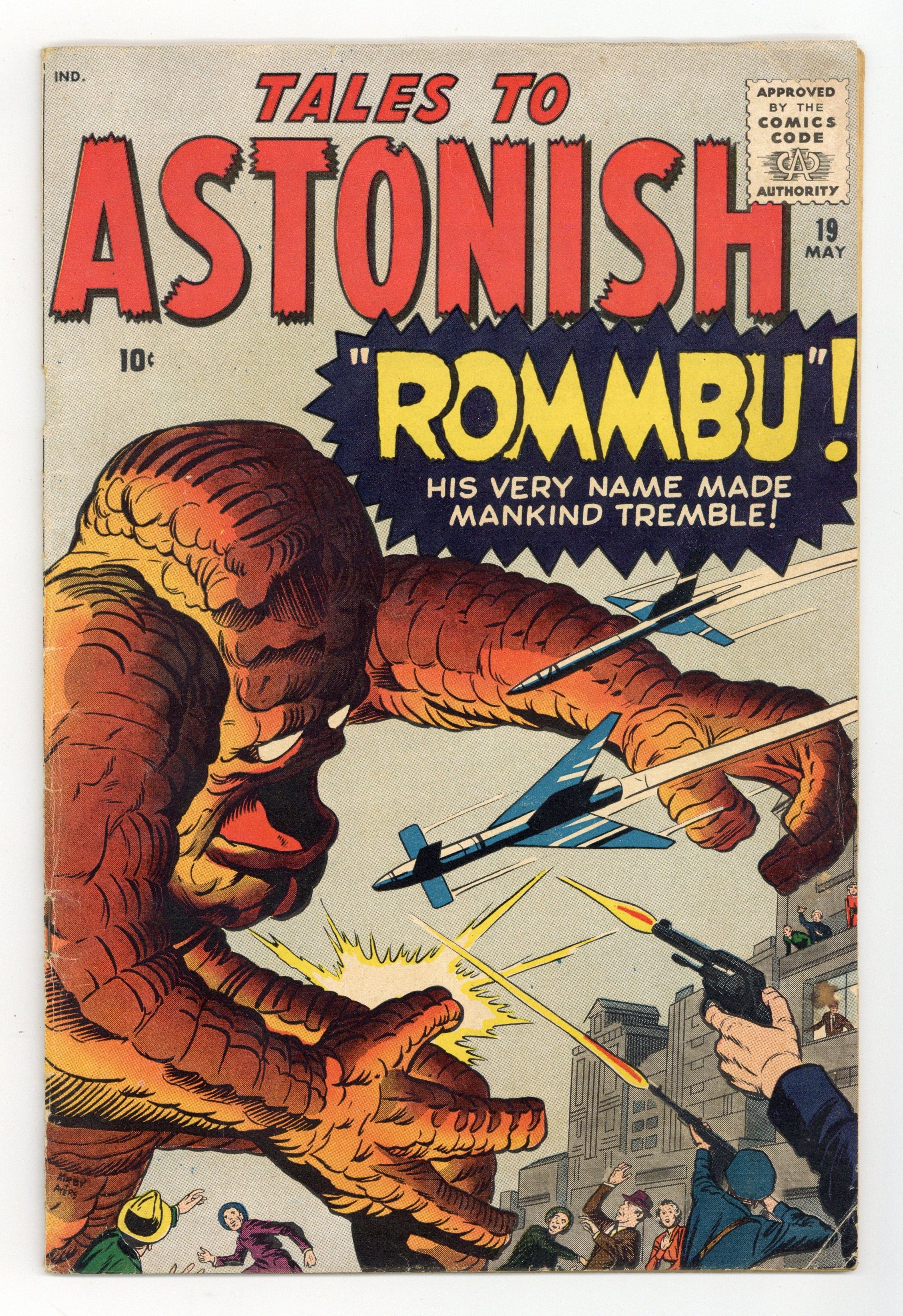 Cover by Jack Kirby and Dick Ayers. Rommbu! Part One, art by Jack Kirby and Dick Ayers; An escaped geologist convicted of armed robbery leads an alien invader to an active volcano in order to sacrifice himself to destroy the alien and protect the planet. Rommbu! Part Two, art by Jack Kirby and Dick Ayers. The Tree text story. The Thing with the Red Eyes, art by Don Heck; A gangster buys a pincushion doll that looks like his rival, and his reactions to pins stuck in it convince him that it works. The Terrible Trap!, art by Steve Ditko; A hunter with contempt for the animals he captures is captured by giant aliens and placed in a maze from which he can see a rocketship he could use to pilot his way home if only he could figure out how to escape the maze. 36 pgs., full color. $0.10. Cover price $0.10.