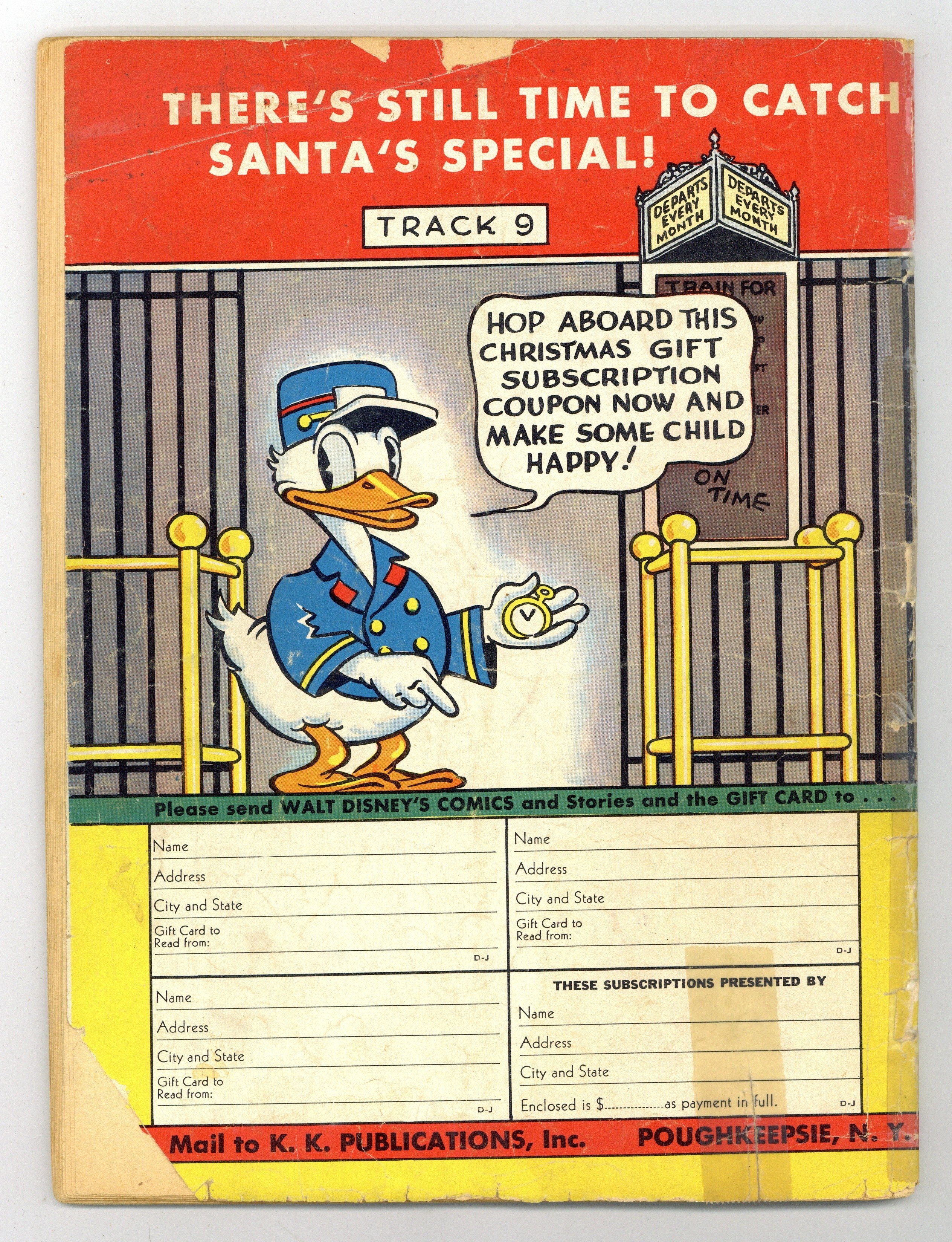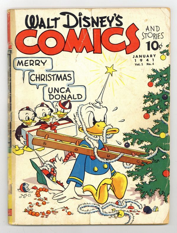 Tags: Disney Ducks & MicePublished Jan 1941 by Dell/Gold Key.$750.00- 3" cumulative spine split. Cover detached at taped in place. Cover oxidation.