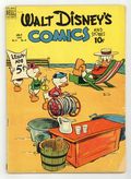Cover by Walt Kelly. Stories and art by Carl Barks, Floyd Gottfredson, Bill Walsh, Dick Moores, Bob Karp, Merrill De Maris, Tony Strobl, Gil Turner, George Waiss, Bill Wright, Manuel Gonzales, and Al Taliaferro. Sometimes listed as Vol. 9 #10. The long-running vehicle for Disney character comics featured work by Carl Barks, Floyd Gottfredson, and Pogo's Walt Kelly. In a classic story from the Mickey Mouse comic strip, Mickey goes after the Phantom Blot in a climactic speedboat-plane chase. In a story by Barks, Huey, Dewey and Louie's new pets defend the home from the Black Mask Burglar. Pluto dreams of a world where dogs own humans as pets! Donald Duck; Bucky Bug; Li'l Bad Wolf; Mickey Mouse; Dumbo the Flying Elephant; Plutos Picnic; Mickey Mouse Outwits the Phantom Blot. 48 pages, Full Color. Cover price $0.10.