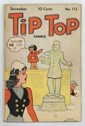 Tags: Comic Strip ReprintsPublished Dec 1945 by United Features Syndicate.$35.00Cover by Ernie Bushmiller. Stories and art by Al Capp, Ernie Bushmiller, Rudolph Dirks, Dick Moores, Fred Methot, Paul Berdanier, Sam Leff, Ed Dodd, John Hix and Charles Plumb. Sometimes listed as Tip Top Comics Vol. 10 #5. Tip Top Comics presented color reprints of United Features newspaper comic strips. Joe Jinks learns that legendary boxer Killer Kayoe had a son, in a prelude to the Curly Kayoe saga. Sinister Mr. Klondyke returns, with a scheme for blackmail against Bess Giltedge. Bill Bumlin has amusing hallucinations at the dentist. Plus a Li'l Abner storyline by Al Capp. Li'l Abner; The Captain and the Kids; The Triple Terror; Jim Hardy; Stamp Tips; Curly Kayoe; Back Home Again; Ella Cinders; Bill Bumlin; Strange as it Seems; Nancy; Fritzi Ritz; How It Began. 48 pages, Full Color. Cover price $0.10.