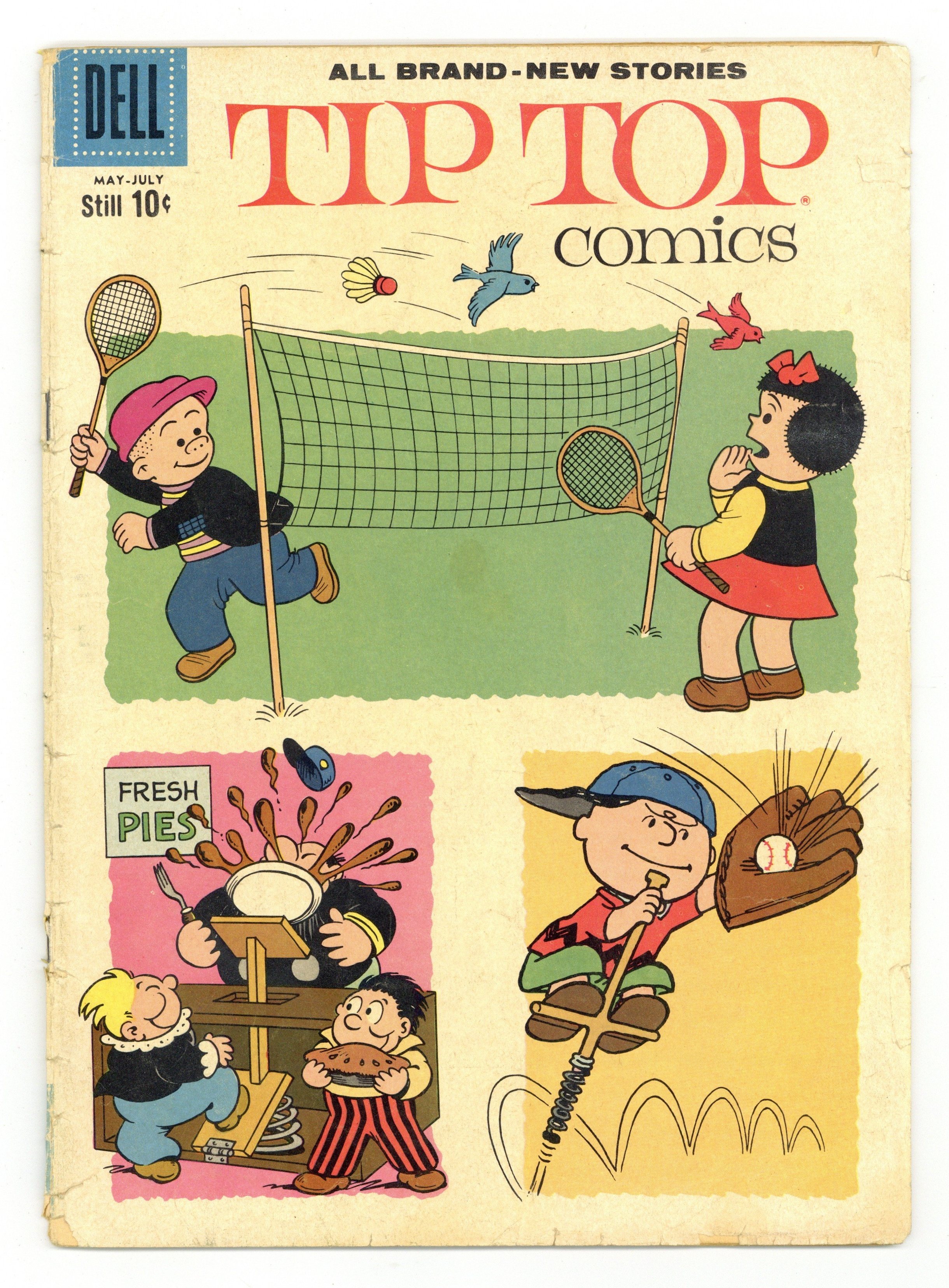 Stories and art by Dale Hale and others. Tip Top Comics presented stories featuring characters from United Features newspaper strips. One of the strips in the comic is Charles Schulz's Peanuts, featuring rare stories not written or drawn by Schulz, but by fellow artist Dale Hale. The girls tell Lucy a secret, and she's so impressed with her secret-keeping skills, she can't wait to tell it to Charlie Brown. Wealthy Rollo's exploration of an Egyptian tomb leads Nancy and Sluggo to find some mummies of their own. Peanuts; Nancy: A Fright to Remember; The Intellect; Sluggo: Out on a Limb; The Captain and the Kids: Long Distance Operators. 32 pages, Full Color. Cover price $0.10.