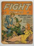 Cover by Dan Zolnerowich. Edited by Jerry Iger. Stories and art by Al Bryant, Rafael Astarita, Lee Ames, Nick Cardy, Rudy Palais, P.R. Isip and Alex Blum, plus a cartoon page featuring Jack Kamen, Art Peddy, John Cassone and Henry C. Morse. A combat-themed anthology from Fiction House that featured early work from many future comics legends (often uncredited) in the Eisner-Iger Shop. Glamour-girl turned super-spy Senorita Rio tries to convince a South American presidente that his life is in danger; Shark Brodie and Pacific Islander Lily battle Axis forces in the South Pacific; Hooks Devlin investigates after an intelligence source is murdered on stage in front of an audience. Cover features a small promo for war savings stamps, a US military funding drive. Shark Brodie; Dusty Rhodes; Senorita Rio; Rip Carson; Jungle Adventure; Blackout; Kayo Kirby; Chip Collins; Hooks Devlin. 68 pages, Full Color. Cover price $0.10.