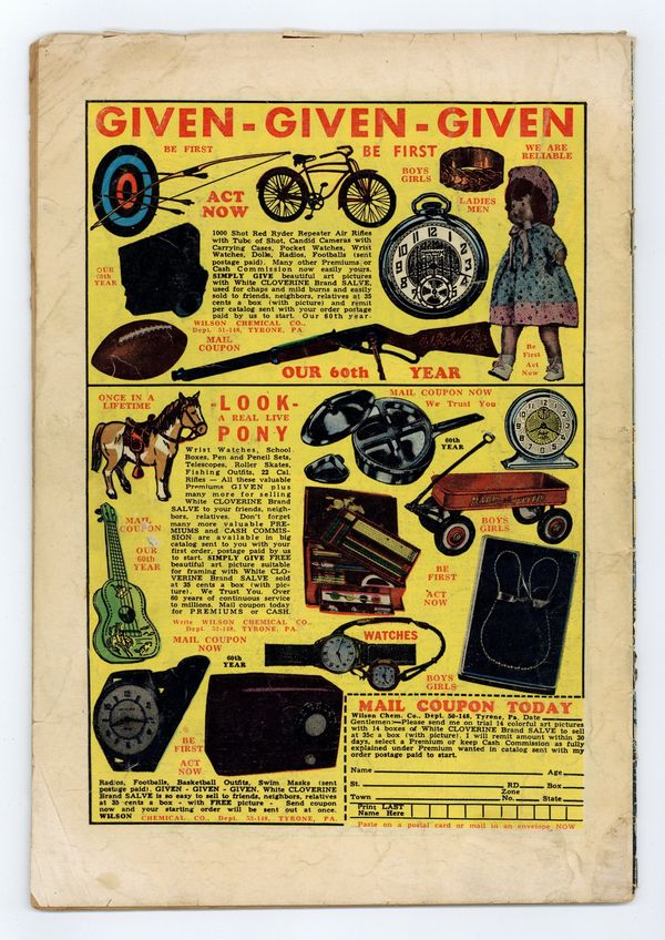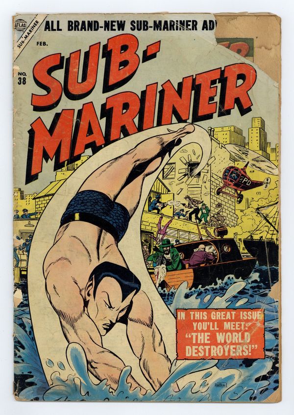 Tags: Sub-MarinerPublished Feb 1955 by Timely/Marvel.$225.00- 8" Cumulative spine split. Cover detached at one staple. Water damage. Includes a Winters Collection certificate from A-1 Comics.