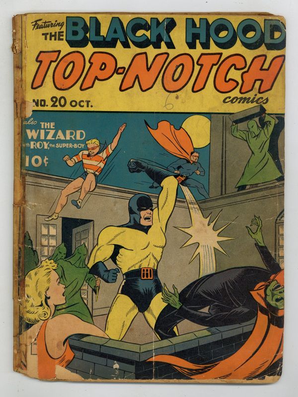 Cover by Al Camy. Edited by Abner Sundell. Stories by Harry Shorten, Al Camy, Harry Biern, Ed Bresnick, Warren King, George Storm, Joe Blair, Ed Smalle, Eddie Brecnick, and Paul Reinman. Heroic tales of action and adventure—these are Top Notch Comics! 68 pages, full color. $0.10. Cover price $0.10.