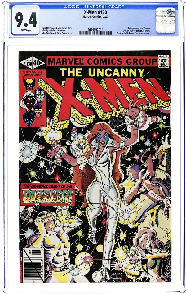 Direct Edition. The Dark Phoenix Saga: Part 2 of 9 - "Dazzler!" Story by Chris Claremont and John Byrne. Art by John Byrne and Terry Austin. Wolverine, Colossus, and Storm have been taken captive by the sultry and dangerous White Queen, but for what purpose. Only the young new mutant Kitty Pryde can warn the rest of the team, but will she be in time to save her new friends? Meanwhile, Cyclops and Phoenix encounter another "new mutant" called Dazzler. Plus, Jason Wyngarde continues his mental seduction of Jean Grey. NOTE: 1st appearance of Dazzler. 36 pgs. Cover price $0.40.